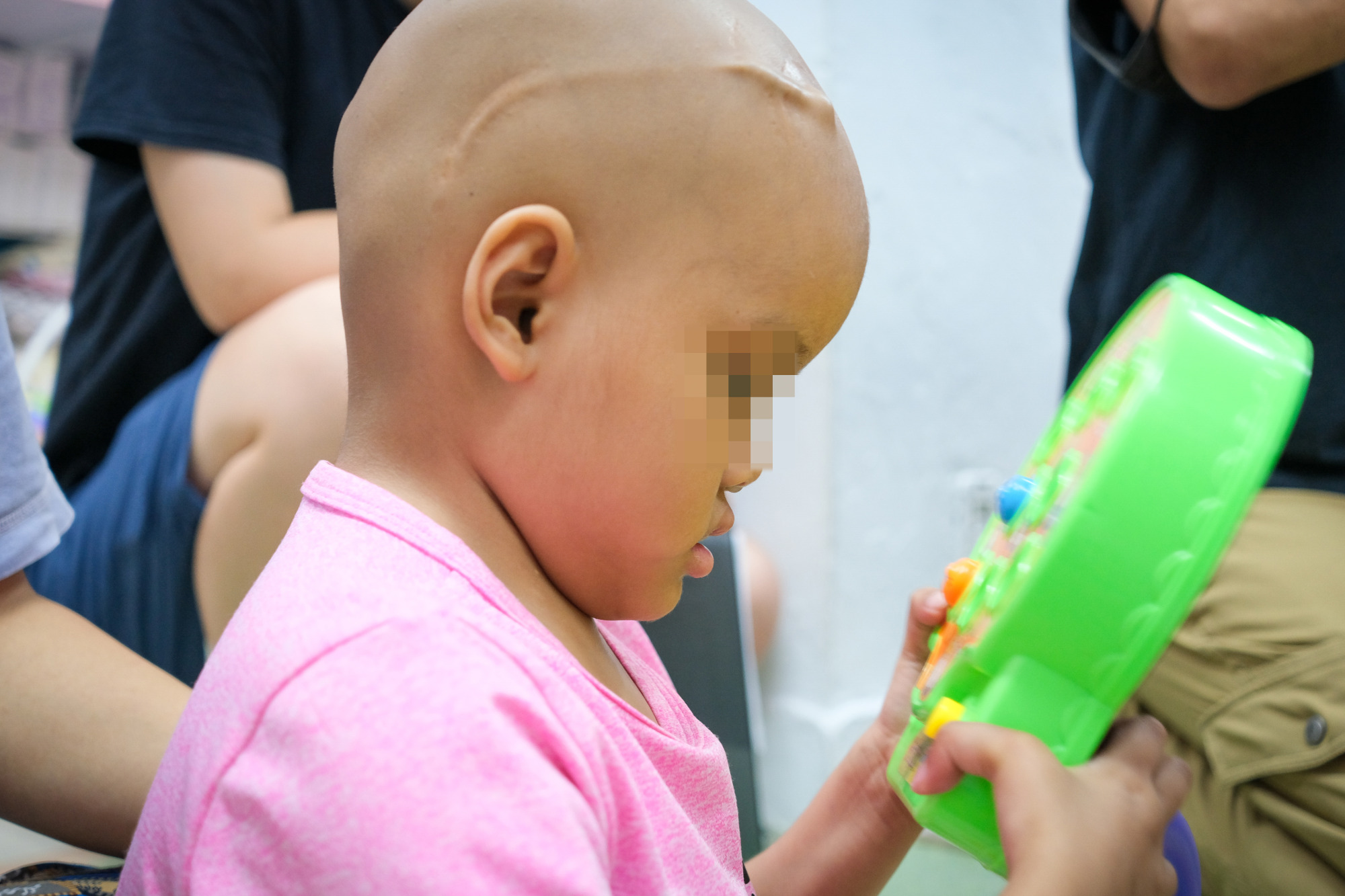 經過醫生診斷,茵茵確診腦癌,需立刻接受手術。醫藥費高達百萬,治療一度中斷。幸好透過關愛基金會極力協助,才能夠接續療癒之路。如今的茵茵,雖然還在勉力復健中,但已慢慢重拾笑容,在愛裡成長。