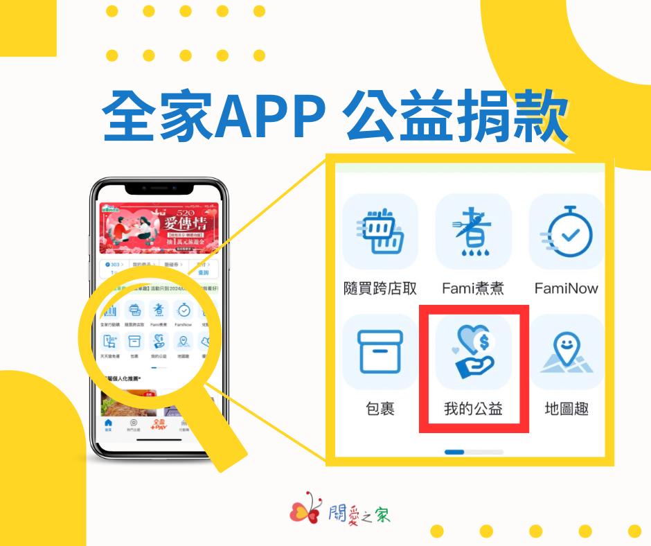 這次,我們與全家便利商店合作,透過「全家APP」快速、便利又安全的捐款給關愛之家。