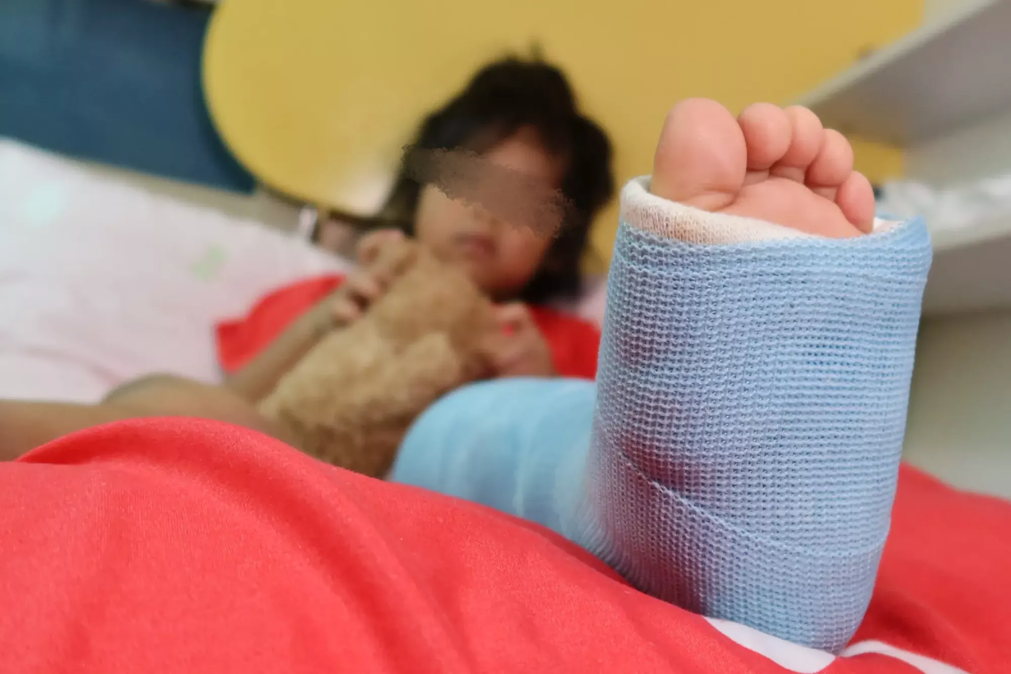 無助的DD媽媽想到曾經幫助過她的關愛之家,鼓起勇氣再次求助。當工作人員看到DD的狀況,真的嚇了一跳,立刻安排就醫評估。還好一切都來得及,在開刀手術後,DD打著石膏回到關愛之家休養,而媽媽也開始準備返鄉。等DD康復後,母子倆就一起回去,重新開始。