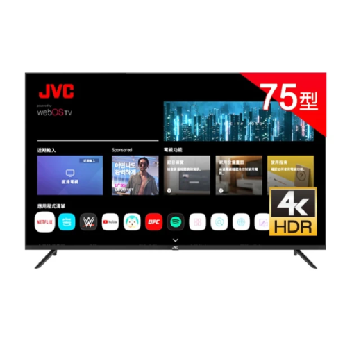 JVC 75型 Apple認證AirPlay2 4K HDR 飛輪體感連網液晶顯示器(75TG)